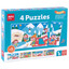 Stabile Kartonbox, 4 Puzzles à XXL Puzzleteile, Pro Jahreszeit ein Puzzle, Vorperforierte Teile zum Herausnehmen und Hereinlegen, Kartonbox-Rückseite mit Inhaltsauflistung und Erklärung.
