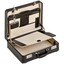 Aus echtem Leder, mit 2 Dehnfalten und 2 Zahlenschlössern, Lederinnenfutter, herausnehmbare Arbeitsplatte innen, topausgestattete Inneneinteilung, Masse: 45 x 34 x 13 cm.