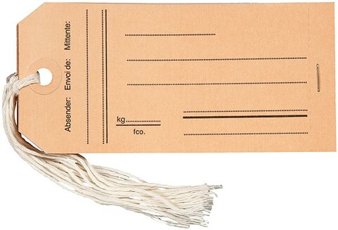 mit Bindfaden und Kartonöse, schwarz bedruckt