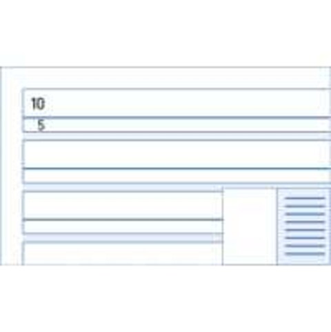 inkl. MwSt.Rechte Seite: 2 Gassen-Schreibliniensystem (10/5 mm), Schreiblinie verstärkt. Zwischenräume farbig, Rand weiss. Linke Seite: blanko. Schreibpapier weiss, 90 g/m²