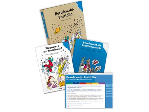 Set für Fachleute: 1 x Online-Zugang zu www.berufswahl-portfolio.ch, 1 x Schülerheft (Wegweiser zur Berufswahl), 1 x Elternheft (Berufswahl als Familienprojekt), 1 Ordner mit Kapitelregister