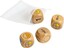 Blaue Kunststoffbox mit transparentem Deckel, 4 Kunststoffwürfel.