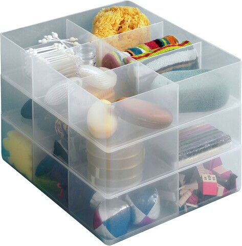 Aus robustem und wieder verwertbarem Kunststoff (PP) | aufeinander stapelbar | versenkbar in der Box | für Nähartikel, Kleinmaterial, Büroartikel, Perlen | Masse (BxTxH): aussen 310 x 375 x 90 mm. Mit 6 Fächern à 150 x 115 x 87 mm / aufeinander stapelbar. Für 4Liter, 9Liter oder 22Liter Kunststoffbox