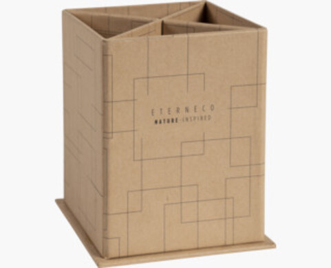 - Hergestellt aus recyceltem Karton, das mit der revolutionären Teksto-Karte überzogen und mit Pflanzenöl beschichtet ist und so einen ausgezeichneten Wasserschutz bietet.