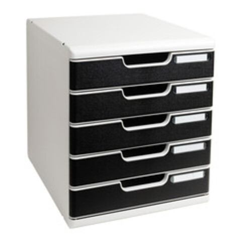 Exacompta MODULO A4 Schubladen Ablagesystem. Stapelbar und nebeneinander angeordnet. Perfektes Verschieben der Schubladen, mit Sicherheitsstopp, komfortablem Griff und Etikettenhalter. Wird mit allen Clips und Abdeckungen geliefert, die für die Montage und Endbearbeitung erforderlich sind.