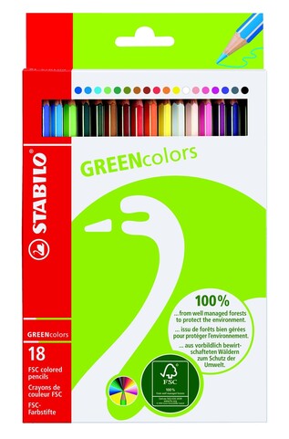 STABILO ist ein umweltbewusstes Unternehmen, das sich unter anderem mit der fortschrittlich-nachhaltigen STABILO GREEN Familie einbringt. Die STABILO GREENcolors Buntstifte sind sechskantig und bestehen aus 100% aus FSC®- zertifiziertem Holz. Sie sind die ökologische Wahl für die Schule und Zuhause.