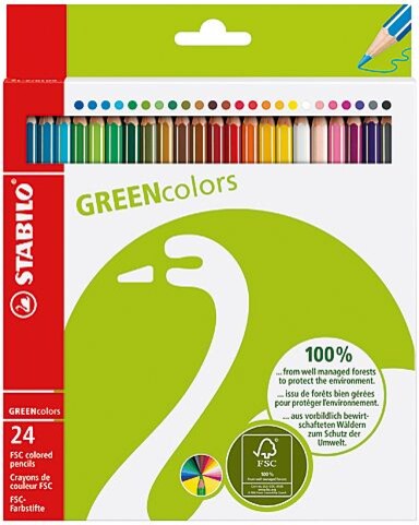 STABILO ist ein umweltbewusstes Unternehmen, das sich unter anderem mit der fortschrittlich-nachhaltigen STABILO GREEN Familie einbringt. Die STABILO GREENcolors Buntstifte sind sechskantig und bestehen aus 100% aus FSC®- zertifiziertem Holz. Sie sind die ökologische Wahl für die Schule und Zuhause.