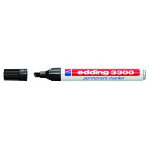 Geruchsarme Tusche, wisch- und wasserfest, lichtbeständig, abriebbeständig, schnelltrocknend, Gehäuse Aluminium weiss, Kappe und Clip Kunststoff in Schreibfarbe, Keilspitze, Strichbreite ca. 1,0 - 5,0 mm.