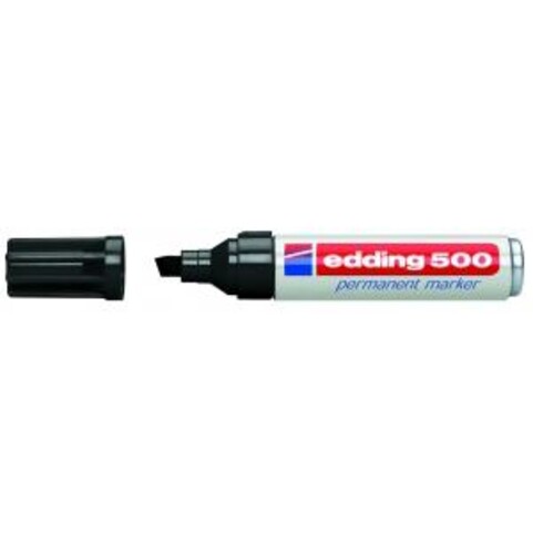 Geruchsarme Tusche, wisch- und wasserfest, lichtbeständig, abriebbeständig, schnelltrocknend, Gehäuse Aluminium weiss, Kappe und Clip Kunststoff in der Schreibfarbe, Keilspitze, Strichbreite ca. 2 - 7 mm.
