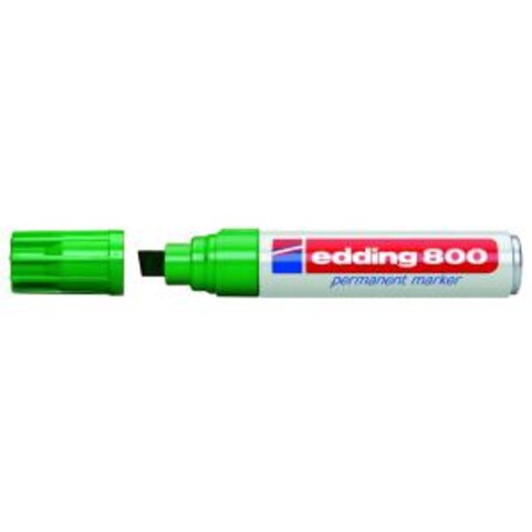 Geruchsarme Tusche, wisch- und wasserfest, lichtbeständig, abriebbeständig, schnelltrocknend, Gehäuse Aluminium weiss, Kappe und Clip Kunststoff in der Schreibfarbe, Keilspitze, Strichbreite ca. 4 - 12 mm.