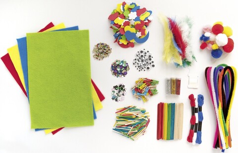 Bunter Materialmix für phantasievolles und kreatives Basteln und Dekorieren.