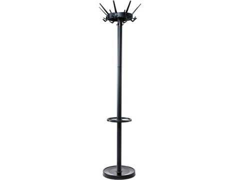 Hochwertige Standgarderobe aus Stahl für permanente Belastung und besonders viele Kleidungsstücke. 32 Kunststoffhaken aus bruchfestem ABS: 8 Huthaken, 16 Jackenhaken, je 4 zusätzliche Haken an der Säule und am Schirmständer.