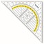 Geodreieck mit spezieller Einteilung und gelbem Band. Aus stabilem Kunststoff. Skalierung heissgeprägt.