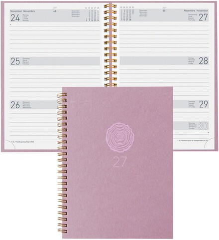 Die Geschäftsagenda Dispo Term Natural Wire-O von Biella ist eine durchdachte Planungsunterstützung für das Jahr 2027. Sie bietet eine praktische Wochenansicht auf zwei Seiten, die es ermöglicht, Termine und Aufgaben übersichtlich zu organisieren. Der Einband besteht aus Recyling-Pappe, was nicht nur umweltfreundlich ist, sondern auch eine ansprechende Haptik bietet.