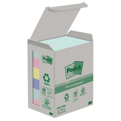 Aus 100 Prozent Recycling-Papier, weniger Verpackungsmaterial, keine Einzelverpackung der Blöcke, umweltfreundlicher Kartondispenser aus 100 Prozent Recycling Material, Blöcke zu 100 Blatt.