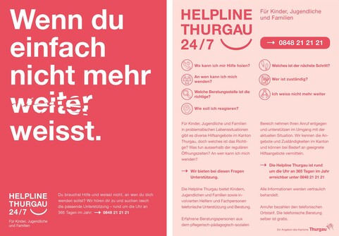 Die Helpline Thurgau 24/7 für Kinder, Jugendliche und Familien bietet rund um die Uhr telefonische Unterstützung und hilft dabei, dass bestehende Angebote besser gefunden und genutzt werden können.