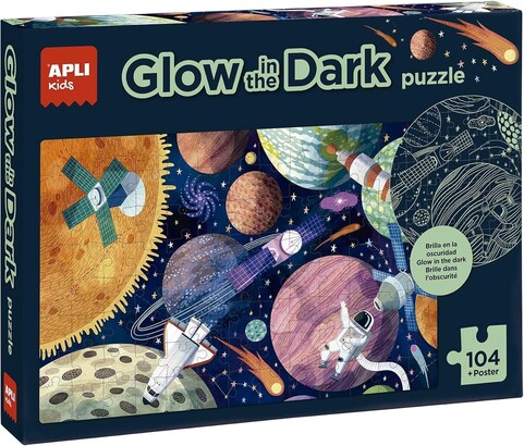 Fluoreszierendes Puzzle "Glow in the dark" mit dem Thema Sonnensystem. Enthält 104 Teile von 5 x 5 cm. Vervollständigen Sie das Puzzle, und wenn Sie fertig sind, schalten Sie das Licht aus und entdecken Sie alle versteckten Details, die im Dunkeln leuchten. Wichtig: Um den Leuchteffekt aufzuladen, muss das Puzzle unter eine Lichtquelle gelegt werden. Größe des Puzzles: 64,5 x 41,5 cm. Entdecke den ganzen Zauber, den das Sonnensystem verbirgt! Es enthält ein Poster, das die tatsächliche Größe des Puzzles zeigt, um den Zusammenbau zu erleichtern. Puzzles verbessern und entwickeln viele Fähigkeiten: Sie fördern die Konzentration, die Beobachtungsgabe, das Gedächtnis und die Problemlösung; außerdem entwickeln sie die räumliche Wahrnehmung, die Feinmotorik, die Formerkennung, die Hand-Augen-Koordination und die mathematischen Fähigkeiten. Empfohlen für Kinder ab 5 Jahren.