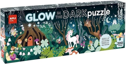 Fluoreszierendes Puzzle "Glow in the dark" mit dem Thema Zauberwald. Enthält 200 Teile von 6 x 5 cm. Vervollständigen Sie das Puzzle, und wenn Sie fertig sind, schalten Sie das Licht aus und entdecken Sie alle versteckten Details, die im Dunkeln leuchten. Wichtig: Um den Leuchteffekt aufzuladen, muss das Puzzle unter eine Lichtquelle gelegt werden. Größe des Puzzles: 150 x 30 cm. Entdecke den ganzen Zauber, den der Wald verbirgt! Es enthält ein Poster, das die tatsächliche Größe des Puzzles zeigt, um den Zusammenbau zu erleichtern. Puzzles verbessern und entwickeln viele Fähigkeiten: Sie fördern die Konzentration, die Beobachtungsgabe, das Gedächtnis und die Problemlösung; außerdem entwickeln sie die räumliche Wahrnehmung, die Feinmotorik, die Formerkennung, die Hand-Augen-Koordination und die mathematischen Fähigkeiten. Empfohlen für Kinder ab 6 Jahren.