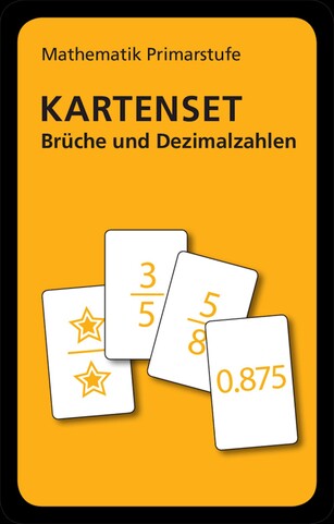 Auf dem Kartenset «Brüche und Dezimalzahlen» stehen einfache Brüche und Dezimalzahlen. Die Schülerinnen und Schüler sortieren, vergleichen und ordnen die Zahlen oder stellen sie mit Modellen dar. Mit den Karten können auch Rechnungen gebildet werden.