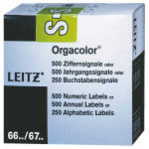 Selbstklebend. Auf Trägerbandrolle, in Ausgabeschachtel. 28 Buchstaben mit 15 unterschiedlichen Farben: A-M in 13 verschiedenen Farben. N-Z in denselben Farben, jedoch mit zusätzlicher Balkenmarkierung. SCH und ST in 2 Zusatzfarben. Die Farben entsprechen dem IFOSA-Farbschlüssel. Sie verblassen nicht und greifen sich nicht ab. Signal mit Strichcode auf der Innenseite.