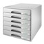 Aus Polystyrol | 6 flache Schubladen (34 mm) für die Aufbewahrung von Dokumenten und die Ablage von Prospekt-, Sichthüllen, sowie Jurismappen | leichtlaufende Schubladen mit Auszugsstopp | mit ergonomischer Griffmulde für bequemes Öffnen | rutschfeste, möbelschonende Gummifüsschen | bis zu 3 Sets platzsparend stapelbar | inklusive Beschriftungsschildern und -haltern | Masse: (BxHxT) 287 x 270 x 363 mm.