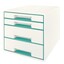 Aus Polystyrol | 2 hohe Schubladen (71 mm) für die Aufbewahrung von Kabeln, Zeitschriften und sogar Küchenutensilien oder anderem, 2 flache Schubladen (34 mm) für Dokumente und Büromaterial | leichtlaufende Schubladen mit Auszugsstopp | mit ergonomischer Griffmulde für bequemes Öffnen | rutschfeste, möbelschonende Gummifüsschen | bis zu 3 Sets platzsparend stapelbar | Lieferung inklusive einem weissen Stift, transparenten, aufsteckbaren Beschriftungsschildern und einem transparenten Schubladeneinsatz | Masse: (BxHxT) 287 x 270 x 363 mm.