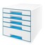 Aus Polystyrol | 4 flache Schubladen (34 mm) für die Aufbewahrung von Dokumenten, Prospekt- und Sichthüllen oder Jurismappen, 1 hohe Schublade (71 mm) für Schreibtischzubehör, z.B. Heftgerät, Mobilgeräte usw. | leichtlaufende Schubladen mit Auszugsstopp | mit ergonomischer Griffmulde für bequemes Öffnen | rutschfeste, möbelschonende Gummifüsschen | bis zu 3 Sets platzsparend stapelbar | Lieferung inklusive einem weissen Stift, transparenten, aufsteckbaren Beschriftungsschildern und einem transparenten Schubladeneinsatz | Masse: (BxHxT) 287 x 270 x 363 mm.
