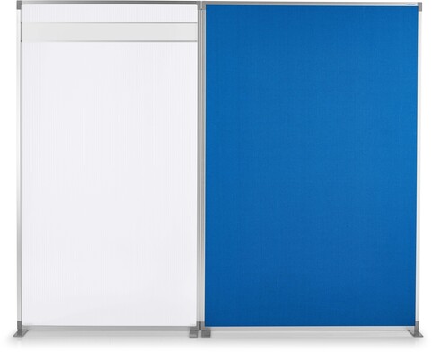 Das preisgünstige Trennwand-System für eine flexible + kommunikative Raumgestaltung mit blickdichtem Sichtschutz aus taubenblauem Textil. Stabiler Aluminium-Rahmen + lichtgrau lackierte, T-förmige Standfüße aus Metall. Durch beigefügte Adapter mit weiteren Raumteilern fixierbar, mit Raumteilern Acryl kombinierbar. Ohne Werkzeug sofort einsatzbereit.