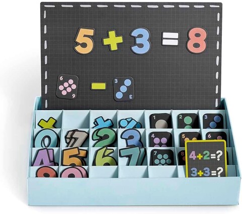 Mit der Mathematik Bekanntschaft machen, Zahlen & Rechensymbole anwenden lernen, Förderung von Interaktion zwischen Kind & Erwachsenen, Magnettafel: 28 x 28 cm, Boxgrösse: 21 x 5,5 x 31 cm