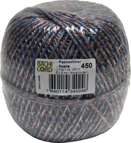inkl. MwSt.Die Recycling-Packschnur von Bächi-Cord ist umweltfreundlich und wurde aus verschiedenen farbigen textilen Restgarnen hergestellt.