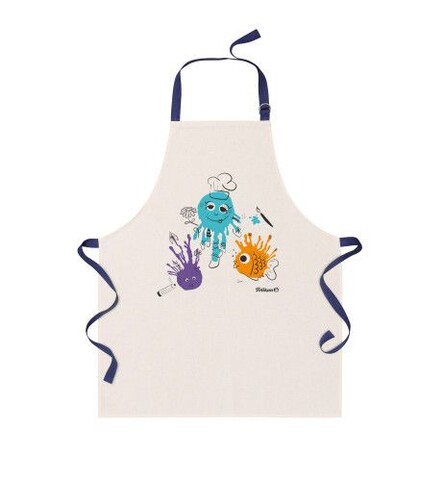 Kinder Malschürze mit Unisex Motiv, Material aus 100% Baumwolle, mit verstellbarem Nackenband und weiteren soften Baumwoll Bändern zur individuellen Grössenanpassung, für ca. 5 - 7 jährige Kinder, in Einheitsgrösse, mit Eco Farben Print, in Hängeschachtel aus FSC Mix Material, Made in Europa.
