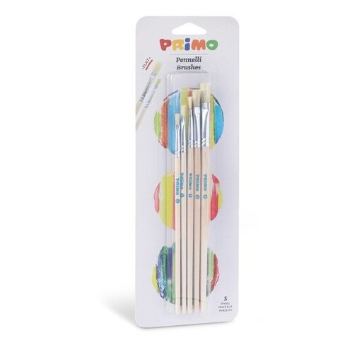 Blister mit 5 flachen Pinseln aus Borstenhaar.