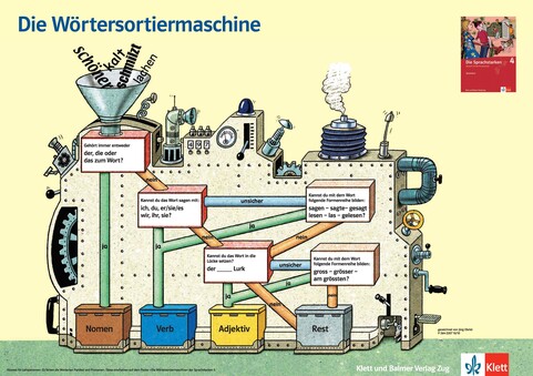 Die Wörtersortiermaschine ist Teil des Sprachbuches der «Sprachstarken 4». Sie unterstützt junge Sprachforscher und -forscherinnen beim Ordnen von Wörtern.