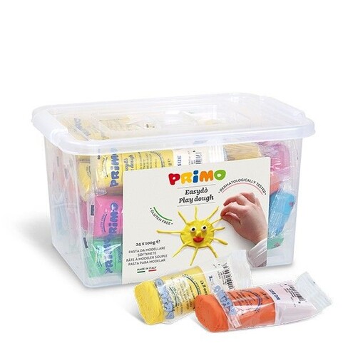 Softknete Stange im Koffer, 5 Farben, 24 Stück. Easydò gluten free ist eine bunte und glutenfreie Softknete mit Rohstoffen von 92% pflanzlichen Ursprungs. Gut modellierbar und mischbar, elastisch, angenehm zu kneten, sie lässt die Hände sauber. Falls sie sich ein wenig trocknet, reichen wenige Tropfen Wasser und die Sofknete wird wieder elastisch und modellierbar. Die Farben sind leuchtend und schön und bleiben gleich, sobald sie trocknet. Wenn man sie wiederverwenden möchte, nach Gebrauch luftdicht verpacken um Austrocknung zu vermeiden. Dermatologisch getestet.