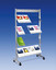 Stabile Konstruktion aus Flachovalrohr mit einer 100 mm hohen Beschriftungsblende; fahrbar auf feststellbaren Zwillingsrollen.
