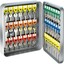 Tiefgezogenes Stahlgehäuse, mit Zahlenschloss, Türe kann 180° geöffnet werden, mit schwenkbarem Schlüsselverzeichnis, verstellbare Hakenleiste, inkl. patentierten Spezialschlüsselanhängern in den gleichen Farben der Hakenleistenstreifen und Befestigungsmaterial.