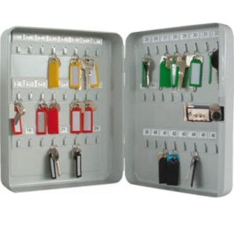 inkl. MwSt.Stahlblech, pulverbeschichtete Lackierung silber, mechanisches 3-Ziffer-Zahlenschloss, feste eingeschweisste Hakenleiste, Hakennummerierung und Register beigelegt, inklusive Schlüsseletiketten.
