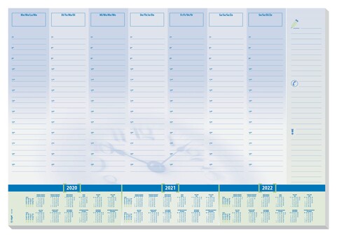 Schreibunterlage mit aktuellem 3-Jahres-Kalendarium, in hoher Papierqualität. Die stabile Leimung an der Unterkante und partiell an der Oberkante verhindert zuverlässig ein Umknicken der Ecken. Sichere Planlage durch stabilen Rückendeckel.