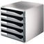 Post-Set mit 5 Schubladen aus Polystyrol, Innenmass Schubladen: B x H x T 251 x 46 x 323 mm, grosse auswechselbare Beschriftungsschilder, rutschfeste und möbelschonende Gummifüsschen, für Formate A4 und grösser, max. Stapelhöhe 3 Sets, Schubladen mit Auszugssperre damit sie nicht herausfallen können, mit Schubladeneinzug für sauber und ordentlich geschlossene Schubladen, Griffloch im Schubladenboden für einfache Entnahme des Schriftguts.
