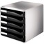 Post-Set mit 5 Schubladen aus Polystyrol, Innenmass Schubladen: B x H x T 251 x 46 x 323 mm, grosse auswechselbare Beschriftungsschilder, rutschfeste und möbelschonende Gummifüsschen, für Formate A4 und grösser, max. Stapelhöhe 3 Sets, Schubladen mit Auszugssperre damit sie nicht herausfallen können, mit Schubladeneinzug für sauber und ordentlich geschlossene Schubladen, Griffloch im Schubladenboden für einfache Entnahme des Schriftguts.