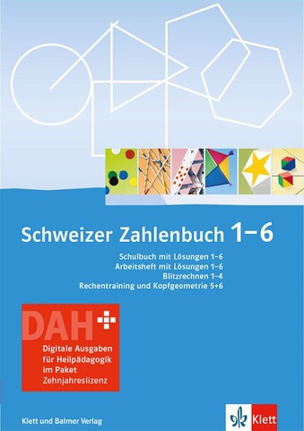 Schulbuch mit Lösungen 1-6, Arbeitsheft mit Lösungen 1-6, interaktive Übungen zum Blitzrechnen 1-4, interaktive Übungen zum Rechentraining und zur Kopfgeometrie 5 und 6