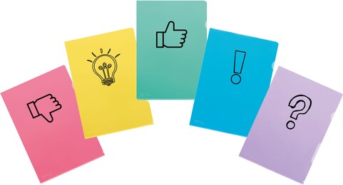 Unsere praktischen Sichtmappen in der „Symbole“-Serie. Sie eignen sich für alle Einlagen im Format A4 und werden aus hochtransparentem, widerstandsfähigem Material hergestellt. Die langlebigen Mappen sind ausgestattet mit einzigartigem Ausreisschutz, doppelt verstärkter Materialverbindung sowie zwei praktischen Griffausschnitten für eine schnellere Handhabung.