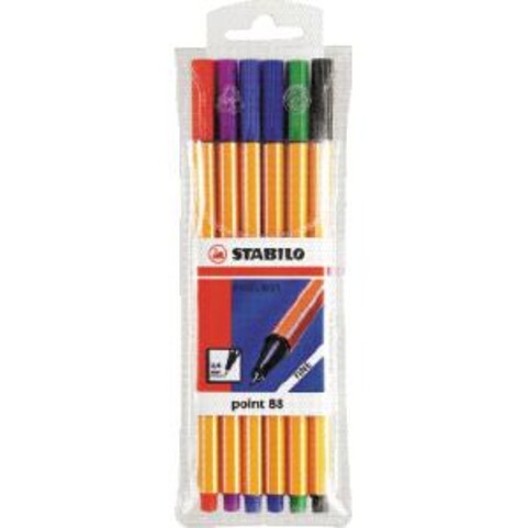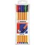 Schaft orange, Kappe und Stiftende in der Schreibfarbe, Tinte auf Wasserbasis, lange Lebensdauer, auch für Schablonen geeignet, ventilierte Kappe, metallgefasste Faserspitze, Strichbreite 0,4 mm.