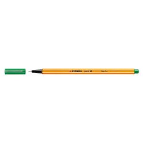 Schaft orange, Kappe und Stiftende in der Schreibfarbe, Tinte auf Wasserbasis, lange Lebensdauer, auch für Schablonen geeignet, ventilierte Kappe, metallgefasste Faserspitze, Strichbreite 0,4 mm.