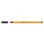 Schaft orange, Kappe und Stiftende in der Schreibfarbe, Tinte auf Wasserbasis, lange Lebensdauer, auch für Schablonen geeignet, ventilierte Kappe, metallgefasste Faserspitze, Strichbreite 0,4 mm.