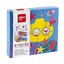Stabile Schuber-Kartonbox, Karton-Banderole mit Inhaltsauflistung und Erklärung. 8 illustrierte Karten mit verschiedenen Motiven, 8 Bogen mit wiederablösbaren Stickern: Transport, Anleitung in Heftform.