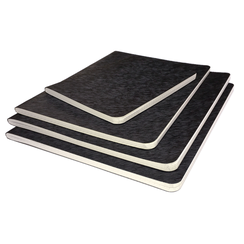Aus Schweizer Produktion, mit speziellem schwarzem Wachstuch überzogen, die Ecken sind abgerundet. Schreibpapier weiss, 80 g/m². Elementarchlorfrei gebleicht, mittlere Satinage. Notizbuch für den täglichen Gebrauch.