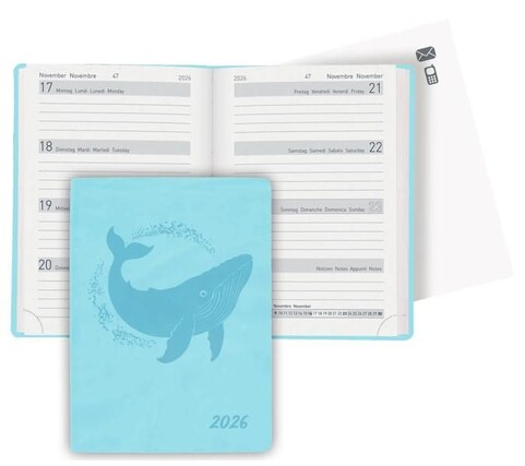 inkl. MwSt.Einband farbig-marmorierter Überzug, Inhalt weisses Papier liniert, Druck schwarz/grün, Kalendarium 4-sprachig d/f/i/e, zusätzlich Jahres- Monats- und Notizseiten, Adressregister, Informationen und Eckenperforation