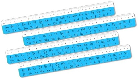 Massstab bedruckt mit Buchstaben und Zahlen der Basisschrift, Kunststoff, elastisch, Masseinteilung Millimeter