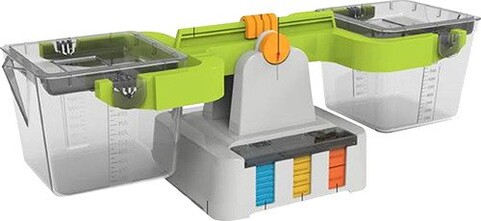 Diese Waage ermöglicht das Messen von Gewicht und Volumen von festen oder flüssigen Materialien. Die abnehmbaren Messbecher haben einen Ausgiesser, Messmarkierungen bis 1000 ml und einen Deckel, um ein Verschütten zu verhindern.